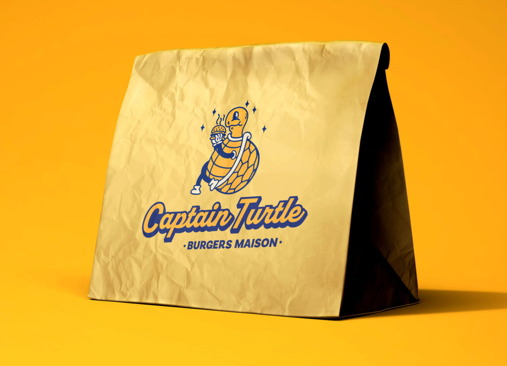 Captain Turtle est un food truck misant sur des produits frais et locaux pour proposer à ses clients la meilleure qualité possible avec du 100% fait maison ! La commande a été l’identité visuelle complète : habillage food truck, logotype, système graphique, packaging, fer pour pain à burger