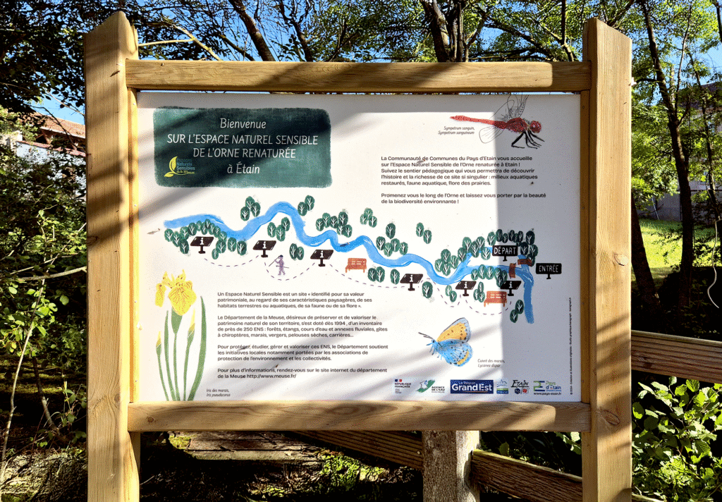 Ces panneaux pédagogiques ont pour but d’informer les passants du travail effectué sur ce cours d’eau. Toutes les illustrations ont été créées à partir des plantes, animaux et insectes abritant les eaux de ce coin de verdure. Commande : illustrations et édition